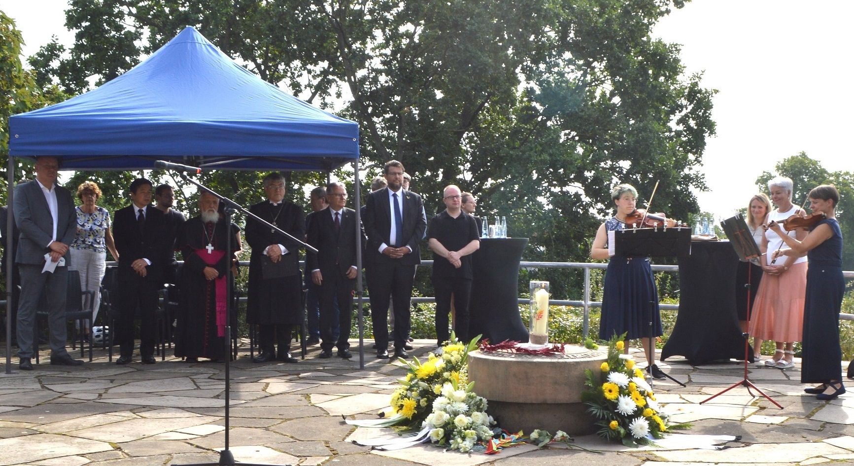 Ansprachen hielten die Magdeburger Bürgermeisterin und Beigeordnete für Kultur, Schule und Sport, Regina-Dolores Stieler-Hinz, der Gesandte der Botschaft von Japan in Deutschland, Kunihiko Kawazu, sowie der Landesbischof der Evangelischen Kirche in Mitteldeutschland, Friedrich Kramer, und der Bischof des Bistums Magdeburg, Dr. Gerhard Feige. Landesbischof Kramer ist auch Friedensbeauftragter des Rates der Evangelischen Kirche in Deutschland (EKD).